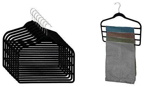 -. Feature : Non-Slip Velvet material ensures trousers stay in place / 360 degree chrome, swivel rod hook to hang items easily on any closet rod, towel bar, or standard size door / Durable metal construction provides strength, reliability and long-lasting beauty / Can also be used for belts, scarves or ties / Great space saving design that holds up to 4-pairs of pants or other garments