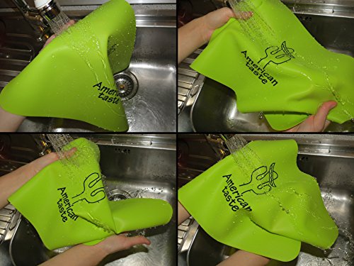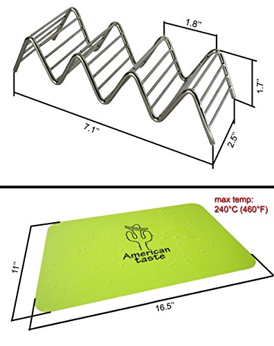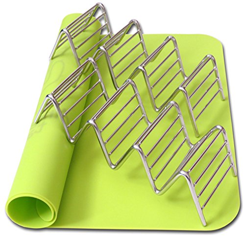 2 Taco Holders Rack Silicone Mat by AT - Best Stainless Steel Taco Rack Tray - Grill, Oven and Dishwasher Safe Taco Shell Stand - Silicone Nonstick Baking Green Mat - Exclusive Taco Recipes e-Book
