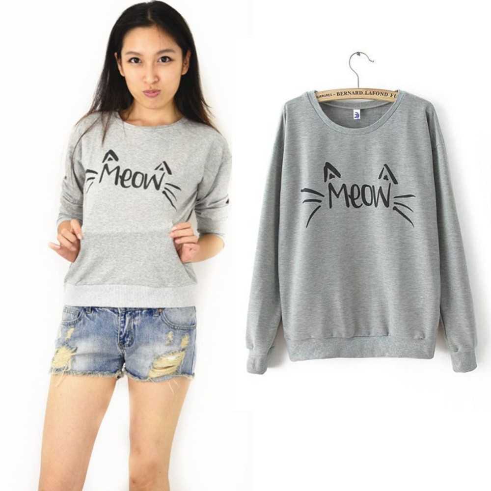 Fashion Women\\\ s Casual long Sleeve MEOW Print T-Shirts Tops Blouse Sweatshirt
