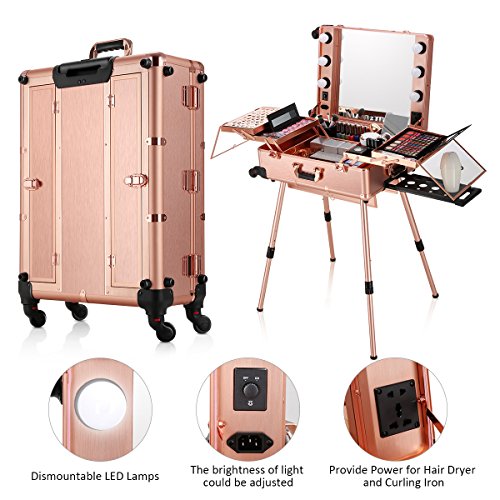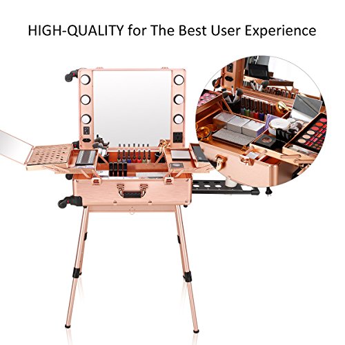 - PREMIUM QUALITY & LOOK: sturdy aluminum frame, reinforced corner, MDF exterior and PU interior make this makeup case last for years; this makeup case will stand out wherever you place it for its chic and fabulous design, widely used in fashion runway as temporary makeup station and beauty travel luggage