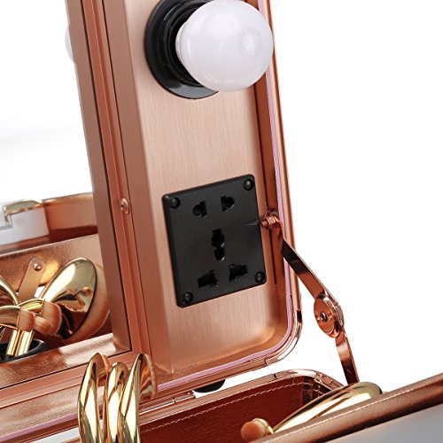 - MIRROR & DIMMABLE LED LIGHTS: comes with 6 LED bulbs that can be installed around the built-in mirror to emit a soft, non-dazzling white glow for a clearer view both in the dark or daylight; you can adjust the brightness of makeup lighting as needed