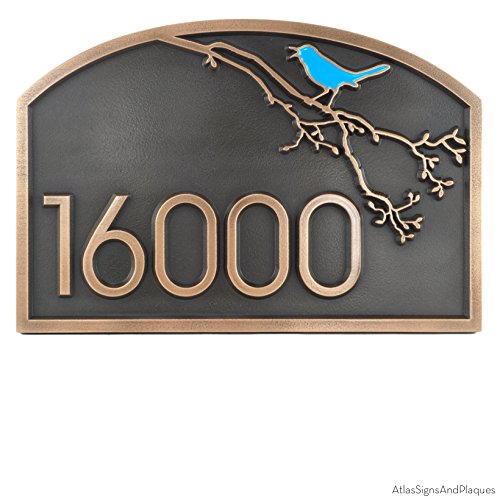-. Title : Songbird Address Plaque 18x12 - Raised Bronze Metal Coated with Painted Songbird Option