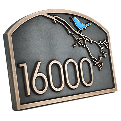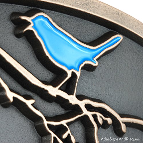 -. Feature : Handcrafted and made in the USA with products from the USA. Custom made for you. / Comes with keyhole style mounting and screws. Template is also included for easy installation by you / Made of 30 pound HDU (type of plastic) that won't warp, rot or promote insects and is fine outside. / Coated with a metal coating that won't flake or peel. Looks like cast but at fraction of the P.R.Ice. / Size is 18 x 12 x 1 inches. Lettering will be raised and plaque will be metal coated in our Bronze finish with the option to color songbird. Any questions please EMAIL us. Thank you for your business!