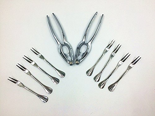 ASIBT 10-piece Seafood Tools Set, 2 Lobster Crackers and 8 Seafood Forks