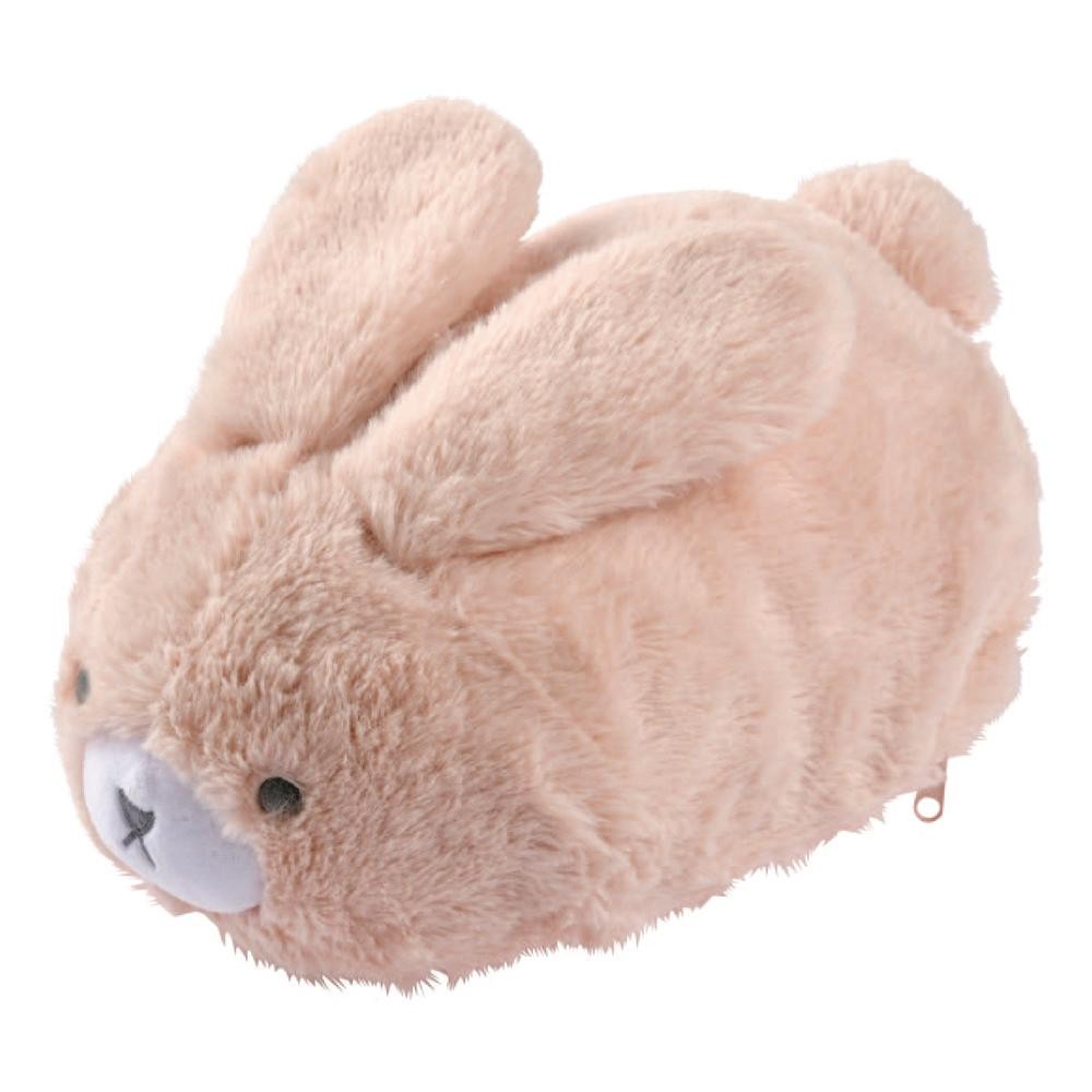 | 寒い冬の日には、ふんわり優しいぬくもりのウサギと寄り添ってリラックスタイムを。カバーのファスナーを開いて湯たんぽをセットします。 |