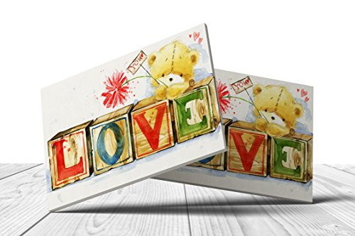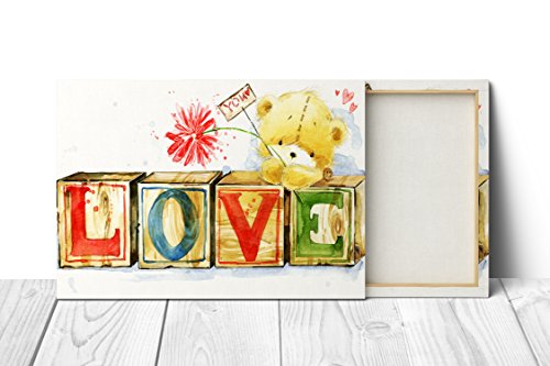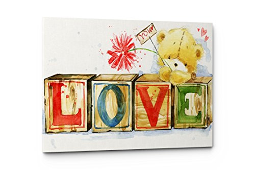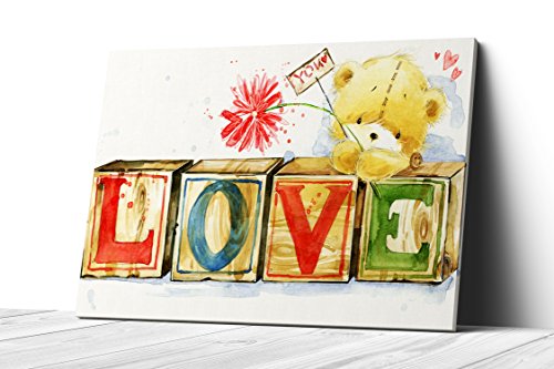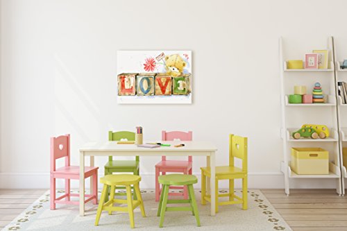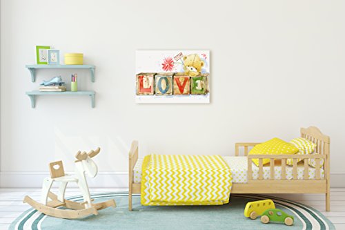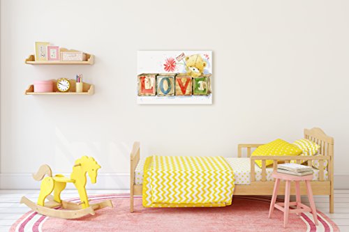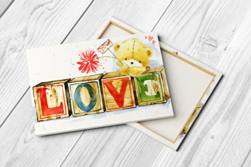 Nursery Children Room Canvas Wall Art Prints (17"W x 11"H, Teddy Bear Love)