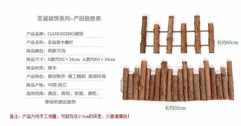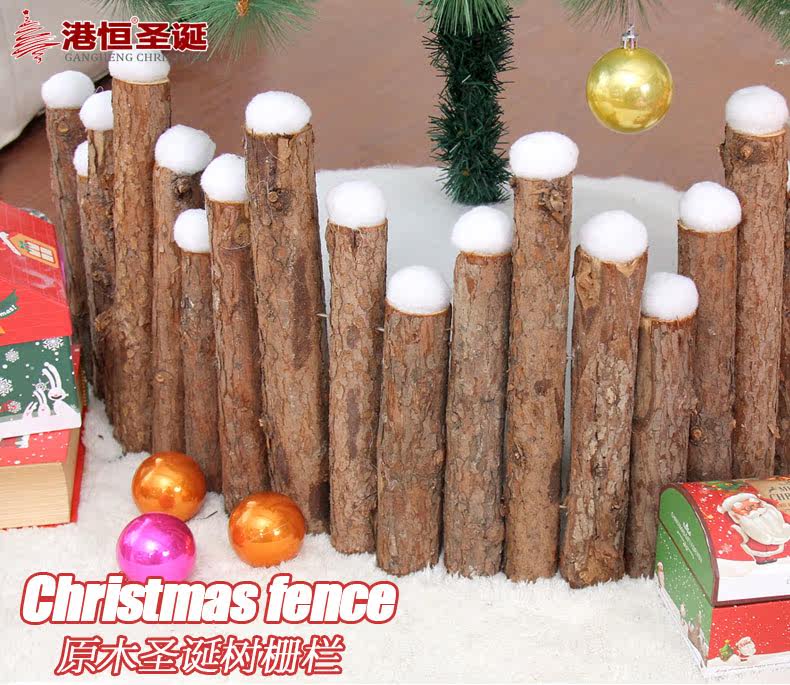 - 【Name】 Heng Hang Christmas decorations logs snow solid wood round wood fence wood color solid wood Christmas fence