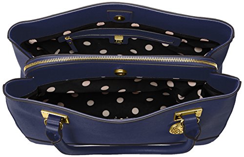 -. Binding : Apparel -. Brand : Anne Klein -. Department : womens -. Feature : Goldstone hardware / Zipper closure / Hanging logo charm detail / Center zip compartment / 2 front wall slip pockets, 1 back wall zip pocket / Interior center zip divider, one interior zip and two slip pockets -. Label : Anne Klein -. Manufacturer : Anne Klein -. Model : New Recruits Satchel Lg -. PackageQuantity : 1 -. ProductGroup : Apparel -. ProductTypeName : HANDBAG -. Publisher : Anne Klein -. Studio : Anne Klein -. Title : Anne Klein New Recruits Satchel Top Handle Bag