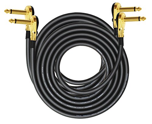 2 Units -Mogami 2524 - 5 Foot-Instrument Effects Patch Cable With Gold Plated Low-Profile, Right Angled Pancake Type TS (6.35mm) Connectors