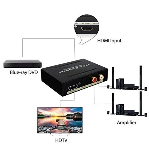 Latest Technology: HDMI audio optical splitter Designed to split 5.1CH/2CH audio from HDMI device like Chromecast, Blu-ray player, cable box, Fire TV, Apple TV, etc. Perfect to use if your receiver/sound bar/surround system does not have HDMI input.Welcome to guide, our worry-free 18-month warranty and friendly customer service.