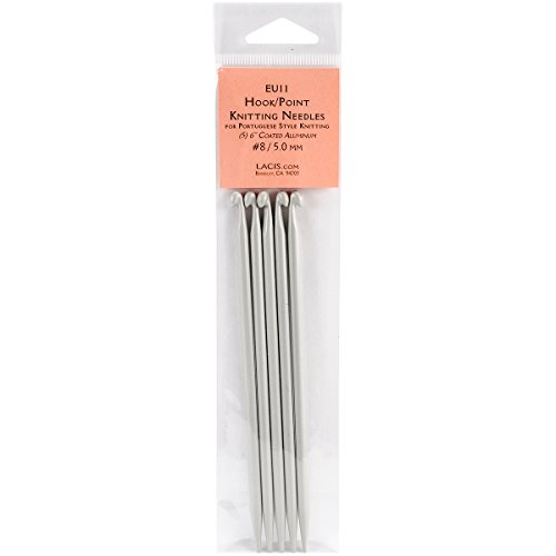 Lacis 3U11-#8 Hook/Point Knitting Needles 6" Coated Aluminum (5 Pack), No. 8/5.0mm, Grey