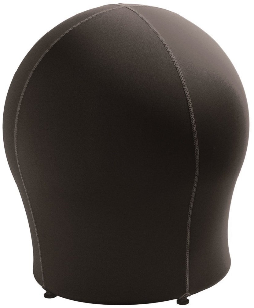 It is a ball chair wrapped in a colorful stretch fabric with a balance ball placed on a steel table.