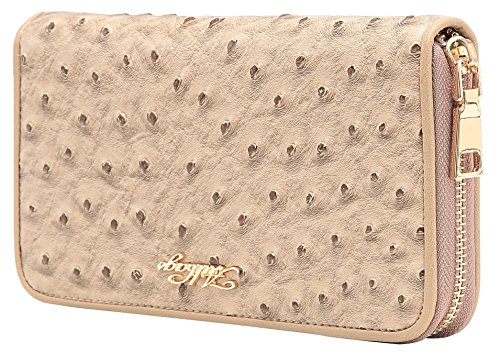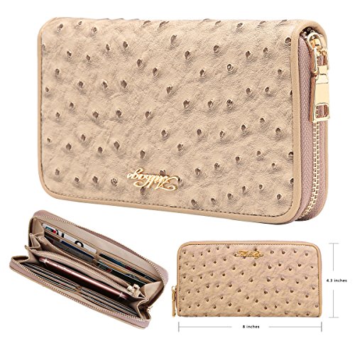 -. Title : Aitbags Women Soft Ostrich Grain Leather Wallet Zippered Arround Clutch Purse