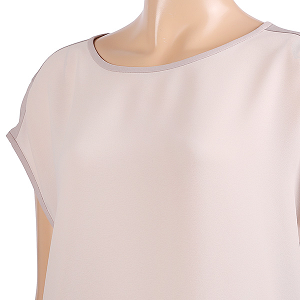 이 제품은 투톤배색의 홉으겹으로 오버사이즈로 제작된 캡소매 스판블라우스입니다