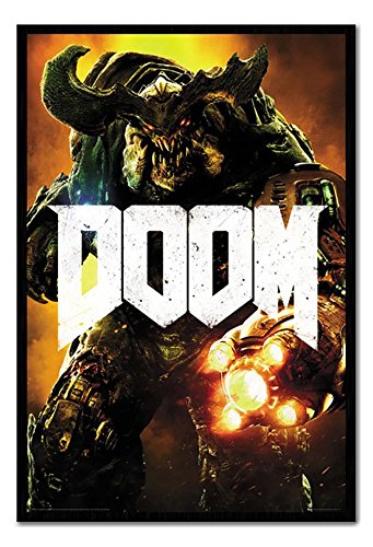 -. Title : Doom Cyber Demon Poster Magnetic Notice Board Black Framed - 96.5 x 66 cms (Approx 38 x 26 inches)