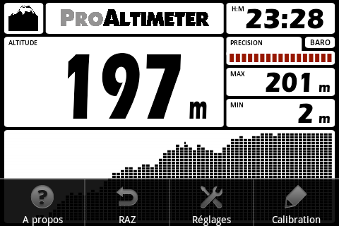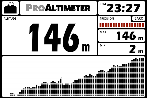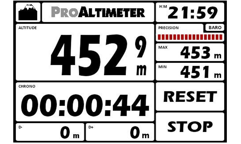 - Feature : > Chart evoluation altitude / > Altitude MIN and MAX / > Altitude alarm sound and/or vibrator / > Stopwatch / Clock / > Geoid compensation for GPS / > Cumulative Ascent and Descent accumulated in real time / > Calibration by pressure or altitude / > Selection of the altitude units in feet or meter