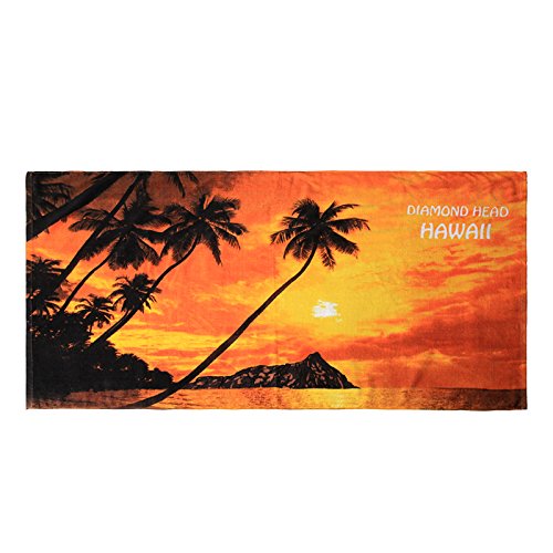 Hawaii Beach Towel 100% Cotton 60x30 Red Sunset Scenic Diamond Head Palm
