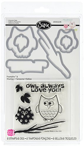 -. Binding : Misc. -. Brand : Sizzix -. Color : Autumn Owls -. EAN : 0841182068354 -. Feature : The design of a Framelits Die allows for perfect registration (with no ridges to obscure), which is useful for stamped images or sentiments / Use in the larger Sizzix roller machines with the machine's included platform / What you see is what you get with Framelits / When using the Essentials Platform or Solo Platform and Shim, the Extended Adapter or Solo Adapter is required -. Label : Sizzix (SIZZ0) -. Manufacturer : Sizzix (SIZZ0) -. Model : 658205 -. MPN : 658205 -. NumberOfItems : 1 -. PackageQuantity : 1 -. PartNumber : 658205 -. ProductGroup : Art and Craft Supply -. ProductTypeName : HOME_FURNITURE_AND_DECOR -. Publisher : Sizzix (SIZZ0) -. Studio : Sizzix (SIZZ0) -. Title : Sizzix Framelits Dies with Clear Stamps, Autumn Owls, 6-Pack -. UPC : 841182068354
