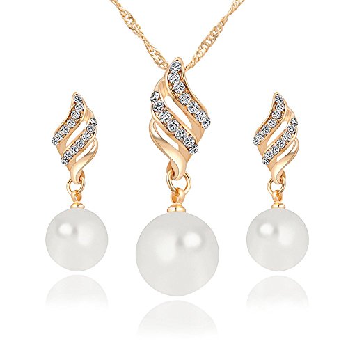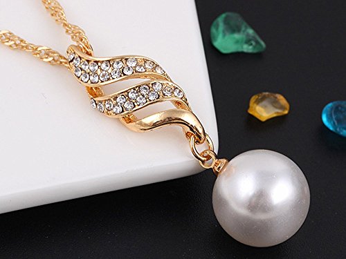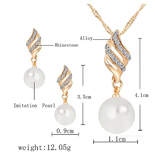A&C Fashion Korean Version Rhinestones Necklace and Earrings Jewelry Set for Women. Unique Pendant Necklace and earrings for Girl. (Gold)