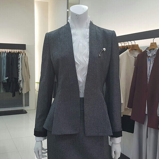 기본 H라인의 스커트 정장 입니다자켓은 슬림핏으로 허리 라인을 잡아주는 여성스러운 디자인입니다꾸미지 않은듯 꾸민 세련된스타일뤼시한 연출을 해보세요~