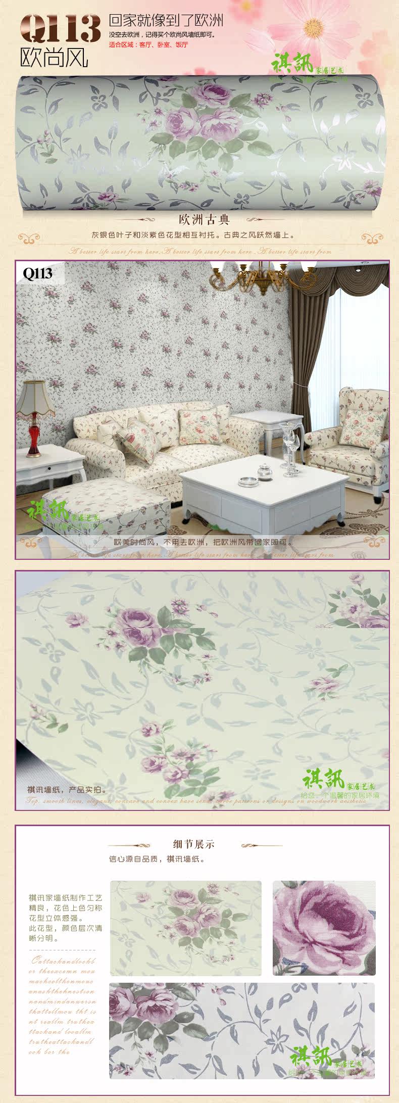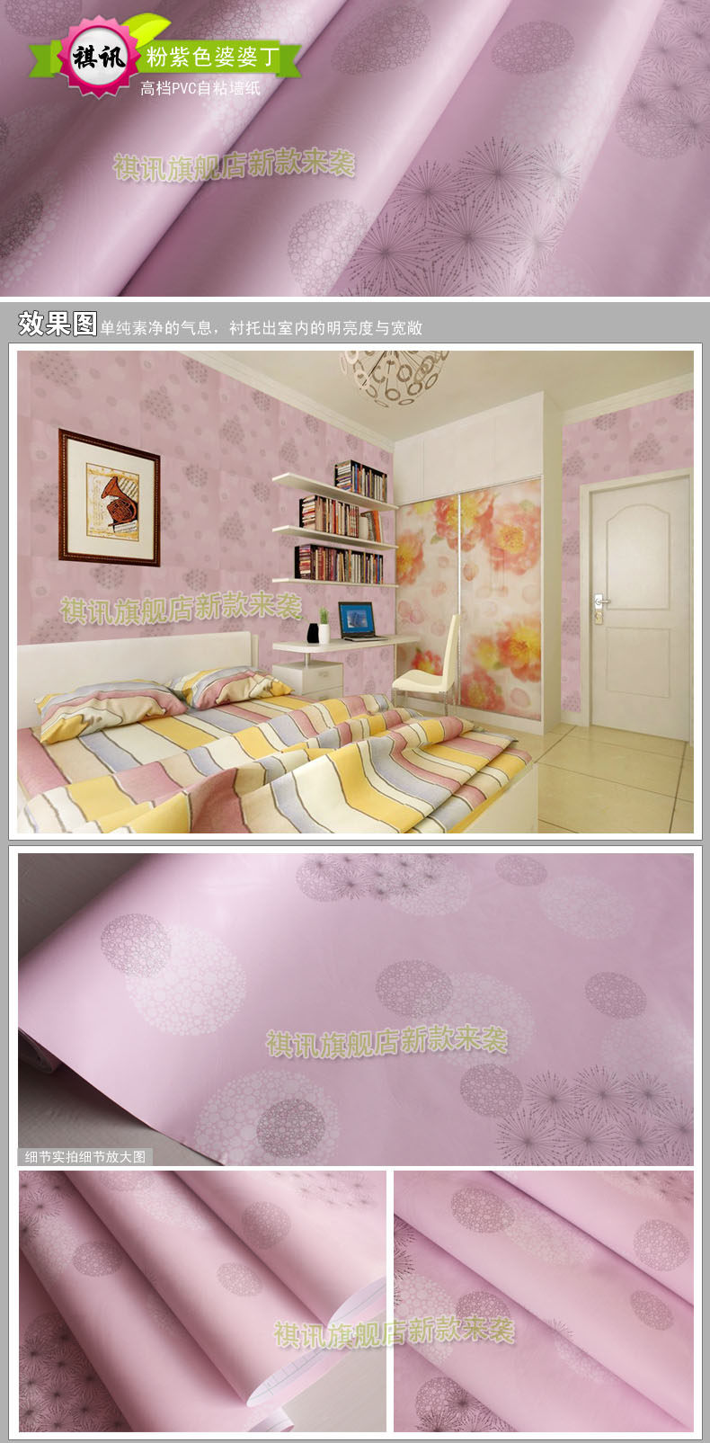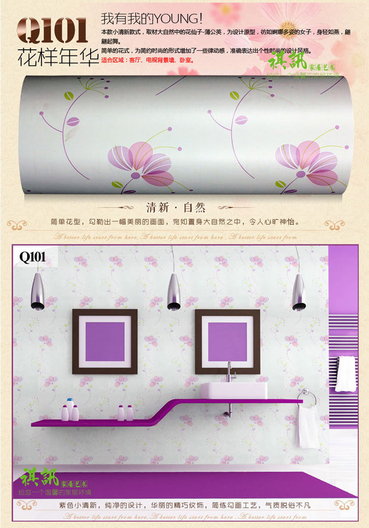 祺讯简约现代碎花pvc墙纸壁纸卧室自粘加厚田园儿童房电视墙贴纸