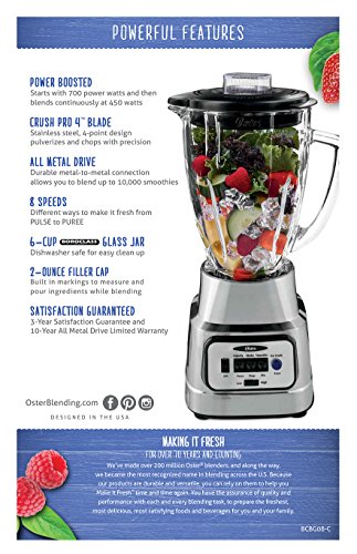 수컷《다》 수컷《다 블랜더 》 Oster BCBG08-C 6-Cup Glass Jar 8-Speed Blender, Brushed Nickel