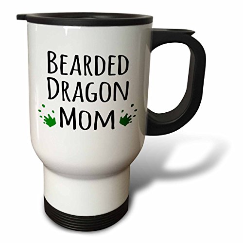 3dRose tm_154045_1 Bearded Dragon Mom for female lizard and reptile enthusiasts and girl pet owners Green footprints Travel Mug, 14 oz, Stainless Steel, White