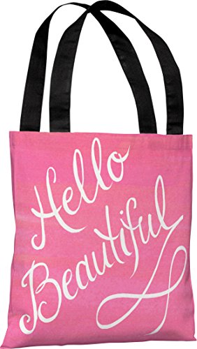 One Bella Casa Hello Beautiful/Pink Bow Tote Bag by Timree Gold, 16"x 16", Pink/White