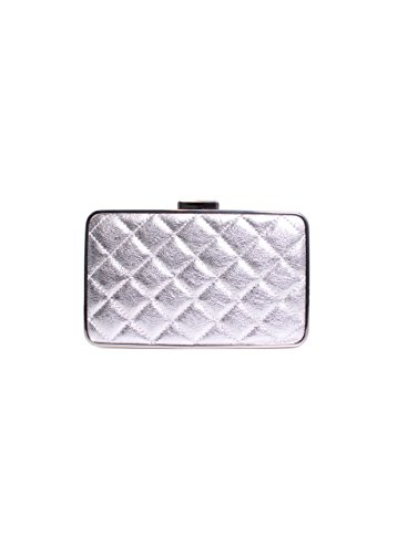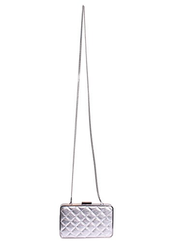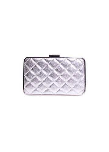 -. Title : Michael Elsie Quilted Box Clutch Silver