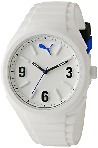 The Gummy Watch is exactly what your ho-hum outfit needs: a perfectly-placed pop of color - or a dash of neutral in a unique, understated design. Its supersoft silicone construction looks great in every hue. Oh, and it does that whole "telling time" thing, too. Features: Analog display with three-hand movement. Silicone-coated case with flexible, embossed silicone band. 3D molded dial. Water resistant to 50 meters. PUMA Cat Logo at face. Case dimension: 46mm.Feature