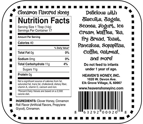 Heaven's Honey Natural Clover Pure Honey, Cinnamon, 8.5 Ounce