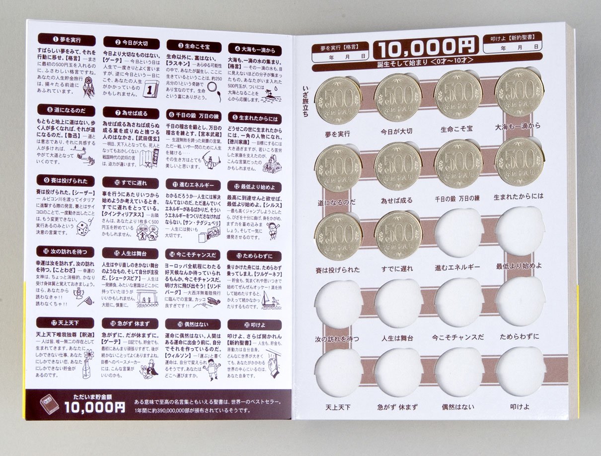 Every time we put a 500 yen coin in the hole of the page, a word or quotation of each age appears!