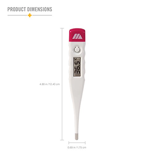 Reliable, Clinically Accurate Readings in 60 Seconds or Less This stylish pink and white thermometer is designed to produce quality readings in 60 seconds or less to help you diagnose symptoms during cold and flu season. Gain professional accurate results to 2/10th of a degree. Keep track of your family’s progress with the handy last reading memory recall feature. This versatile thermometer works well as an oral, rectal or underarm thermometer. A convenient beeper sounds to indicate peak temperature. This thermometer is waterproof so clean-up is a snap! Features - The stylish pink and white MABIS Waterproof Digital Thermometer is designed to produce quality readings in 60 seconds or less to help you diagnose symptoms during cold and flu season.
