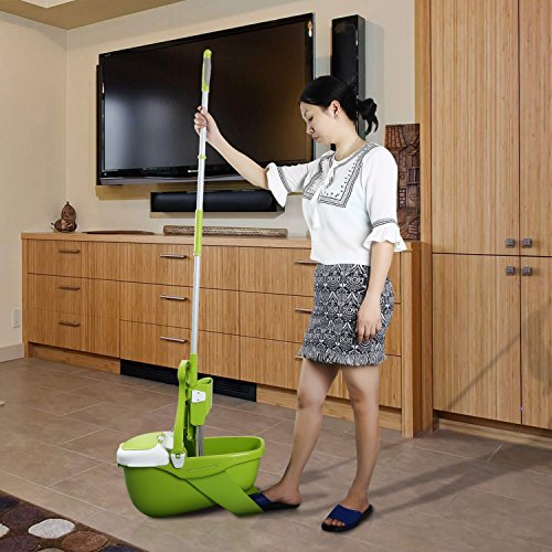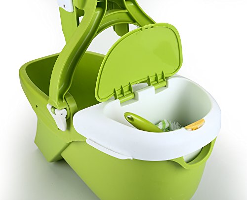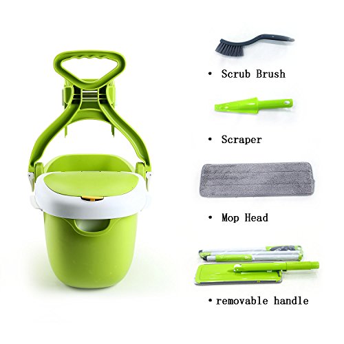 Mee'life Indoor Removable Mop and Bucket Green Deluxe Cleaning System Household Convenient Save Labour Humanized, Mopping Tool Set Extra 2 Mop Replacement Cloth,1Scraper and 1 Brush