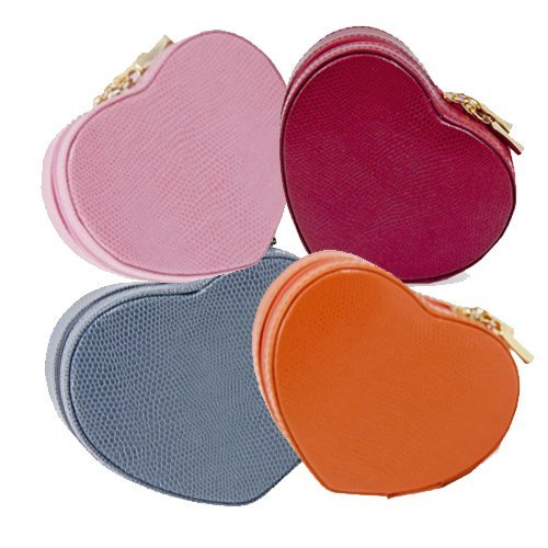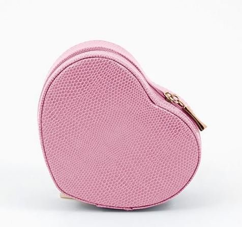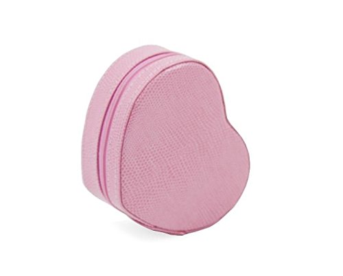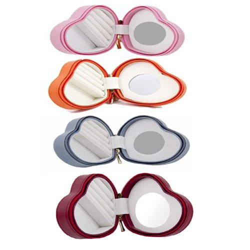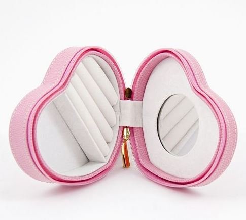 Heart Shape Jewelry Box Display Organizer Holder with Mirror PU Leather Travel Case Storage Box - PINK