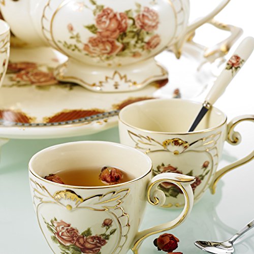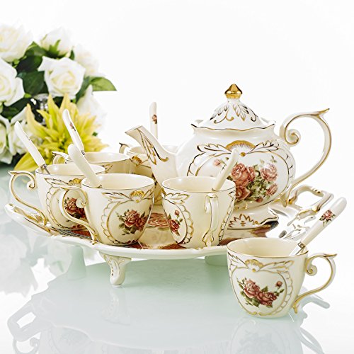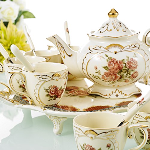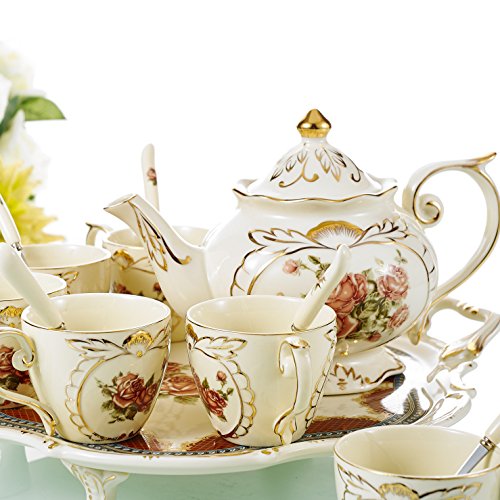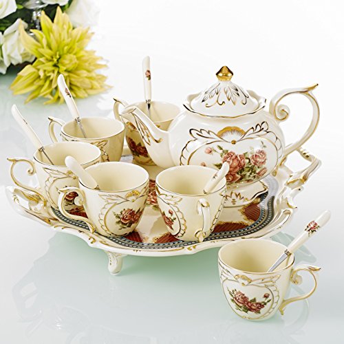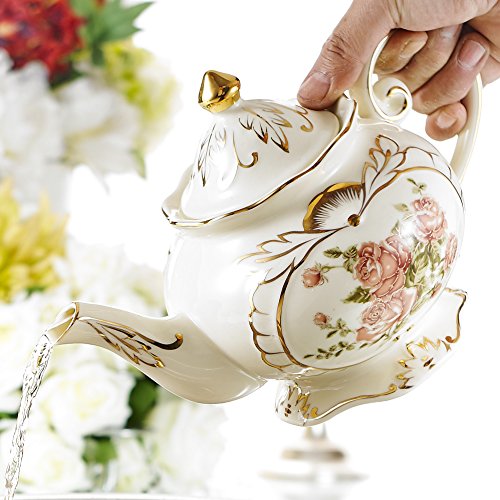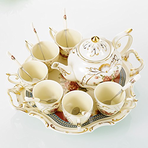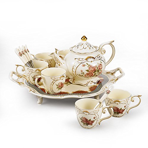 Specifications: Material: Ivory Porcelain Pattern: Floral Color: Ivory Packing size: 42*41*31cm Packing weight: 4950g 10" teapot Volume: 40oz/1200ml, Size: 26*15*17cm 4.5" cup Volume: 8.5oz/250ml, Size: 12*8.5*7 cm 6" spoon Size: 15cm 16" tray Size: 41*35*8cm Package Content 1 * 10" teapot 6 * 4.5" cup 6 * 6" spoon 1 * 16" tray Warm tips: * Can be used in dishwasher, but NOT for microwave use * Because of the mass production, a part products will be a little color difference with the photos * Slight flaw may exist in single product as they are handicraft products. Don't worry, it won't influence quality at all 0 |