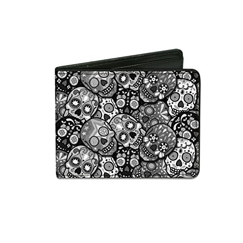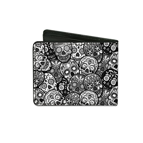 Studio : Buckle-Down Publisher : Buckle-Down Binding : Apparel Product Description This awesome men's bi-fold wallet is made from premium vegan leather. It measures 4.0x3.5x0.5 inches, and features the standard billfold, 5 card slots, and windowed id holder. The logos are applied using advanced printing technologies, so the wallet will still look good after years of hard use. This product is officially licensed by thaneeya sugar skulls and made in USA by Buckle-Down Inc. 0