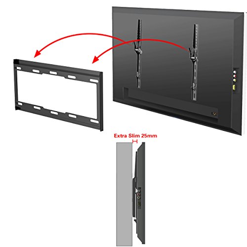 -. Feature : Fits for most of 32-55" LCD/LED/Plasma TVs up to VESA 400x400 and 77lbs(Fits VESA 400X400 400X300 400X200 300X300 300X200 200X200 200X100 200X150 100X100 mm).Please check VESA (mounting hole pattern), stud spacing, possible blocked cable/input and TV weight P.R.Ior to making purchase decision to determine whether this TV wall mount fits your TV and the installation application. / Fits studs up to 16" plus concrete wall, NOT for dry wall applicaton!(For installation application of 18" or 24" stud spacing or need to accomondate centering, it is recommended to buy larger mount). Flush tilt design for better views and glare reducing, 0-14 degree forward tilt / Low profile(1" Only) tilting makes TV close to wall, finish of the mount and all hardware is RoHS (Restriction of Hazardous Substance) certified / All hardware, 6' HDMI cable, bubble level included(6' HDMI cable supports 3D, Ethernet, 1440P and Audio Return conforming to latest HDMI 1.4 Standard) / Security/Safty Lock design to secures your TV in place to prevent accidental lift off