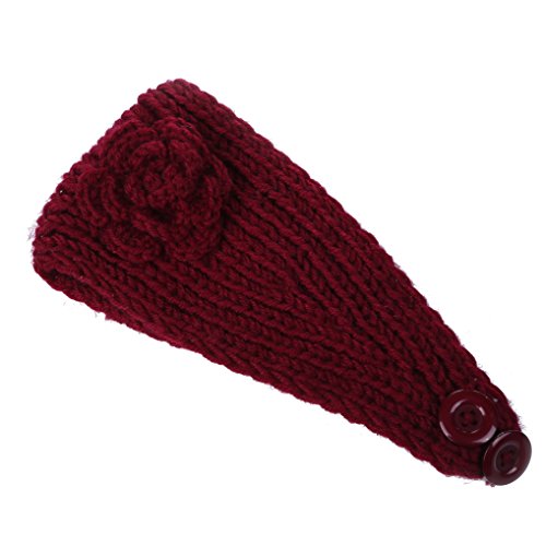 Binding : Apparel Product Description This Women's Crochet Knit Winter Headband with 3D Rose Ear Warmer Hairband is a stylish winter hair accessory. It is extremely useful during cold windy days so as to keep your head and ears warm. This hairband also helps to keep your hair neat and off your face. It is made of soft and stretchy acrylic wool which is knitted to perfection. It is adorned with a huge three-dimensional knitted rose which makes it look even more stylish. You can choose from various colors to match with your winter sweaters, dresses and scarfs. This crochet headband comes with two closure buttons for convenient size adjustment. Size (Approx.)Width: 11cm/ 4.33" Length: 45cm/ 17.72" 0