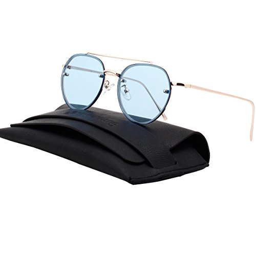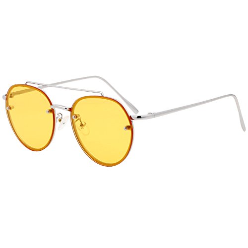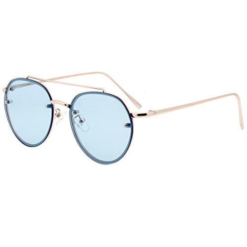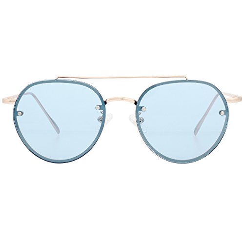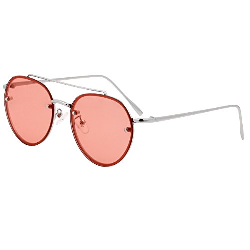 With a minimal design, but a bold effect, these exquisitely crafted sunglasses feature a rimless aviator frame with ultra-slim metal temples and brow bar. Neutral-colored tinted flat lenses and rivets at the front give these sunglasses it's stunning finish. Perfect to wear throughout the sunny months, these rimless aviator sunglasses can be easily paired with any look.