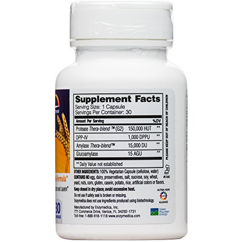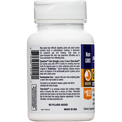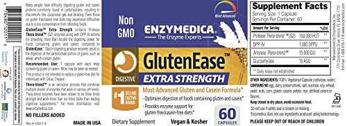 Studio : Enzymedica Publisher : Enzymedica Binding : Health and Beauty Product Description GlutenEase 2X contains the new Thera-blend (G2) for superior gluten degradation Enzymedica uses an exclusive Thera-blend process for protease, lipase, amylase and cellulase enzymes. This means that each enzyme actually contains a blend of multiple strains. GlutenEase 2X contains an exclusive high potency Protease Thera-blend (G2) for enhanced digestion of gluten and casein. Unlike all other Thera-blends, the G2 combination is blended specifically for its ability to enhance DPP-IV activity and increase the speed and efficiency of Gluten protein digestion. The superior combination of Thera-blend (G2) and DPP-IV provide a minimum of 2 times the digestive support previously observed with our original Thera-blend. It does this by breaking down at least twice as much gluten protein as GlutenEase 2X in less time. Starch-digesting amylase enzymes in GlutenEase 2X assist in the digestion of the carbohydrate portion of grains (such as wheat) which contain gluten. 0