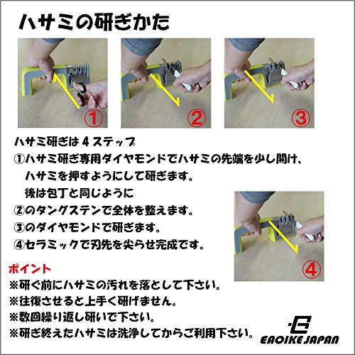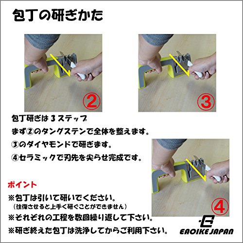 부엌칼 나이프는 3스텝 가위는 4스텝에 (칼 따위를) 갊고 있습니다.(칼의 상황에 따라 (칼 따위를) 갊 분(쪽,편)를 변경해 주십시오)