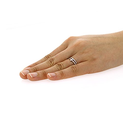 -. Title : 14K White Gold Double Band Sideway Cross Ring (Size 5 to 9)