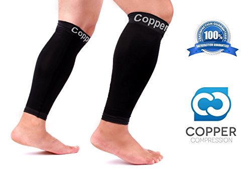 - Feature : Do NOT Be Fooled By Imitations! Many companies claim to have copper infused material but when you turn them inside out you may be disappointed to find that the copper content is very low. We GUARANTEE to have the HIGHEST COPPER CONTENT as well as the HIGHEST QUALITY COPPER in our calf guard / shin splints recovery leg sleeves! / ACCELERATE RECOVERY & ENHANCE CIRCULATION - Provides mild compression for warmth and helps increase circulation, which ultimately reduces pain and promotes healing. These calf compression sleeves also help stimulate oxygen delivery and promote better blood flow to accelerate recovery of inflammation sore muscles and more! / REDUCE STIFFNESS & EASE PAIN - The copper embedded nylon helps stabilize muscle tissue, keeping the swelling of muscle fibers at a micro level and reducing pain. This is a GREAT treatment for shin splints, calf cramps and pain, achilles tendon, arthritis, tendonitis, stress fracture, and more! / WEAR EVERYDAY + HIGH PERFORMANCE - Copper Compression Calf / Shin splint recovery sleeves are extremely comfortable and can be worn everyday to help you recover faster, reduce pain, and get the support you need! Our high quality copper fabric will also withstand washing and will not lose its function over the course of time like many other sleeves! / 100% MONEY BACK GUARANTEE: If you are not COMPLETELY satisfied for any reason at all, you can easily get a fast, prompt refund. So you get to try it out completely RISK FREE!