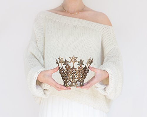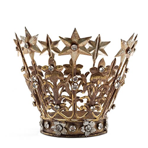 - HIGH QUALITY - Many of our crowns are reproductions of 19th century Santos crowns. Vintage in style with an old world patina. Made of metal, there will be some rust on these crowns as that is part of the rustic antique look of this style. Dark gold antique finish with touches of silver. Set with distressed crystals.
