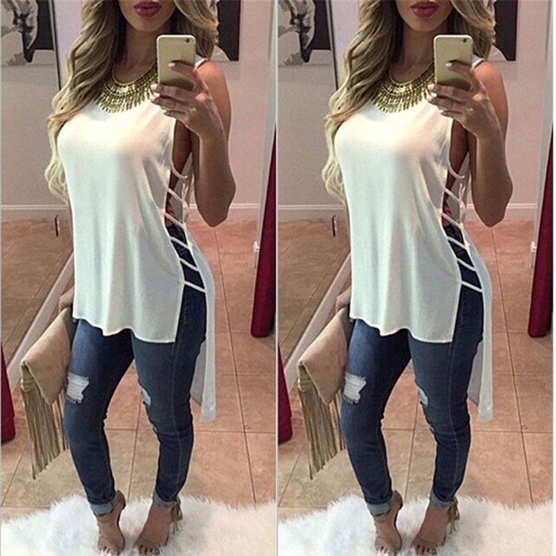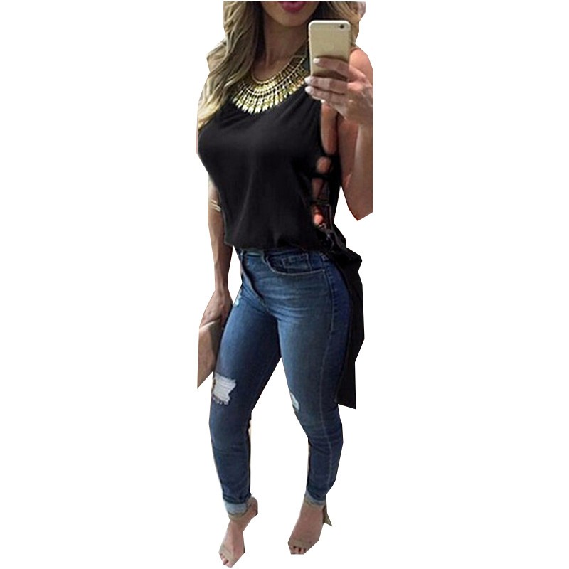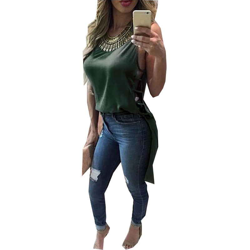 Feature: Women Summer New Round Neck Sleeveless Chiffon Bandage Shirt Blouse Tops. Simple, Sexy Slimming And Comfortable.Perfect For Party Evening, Cocktail, Summer Vacation Or Daily Wear.