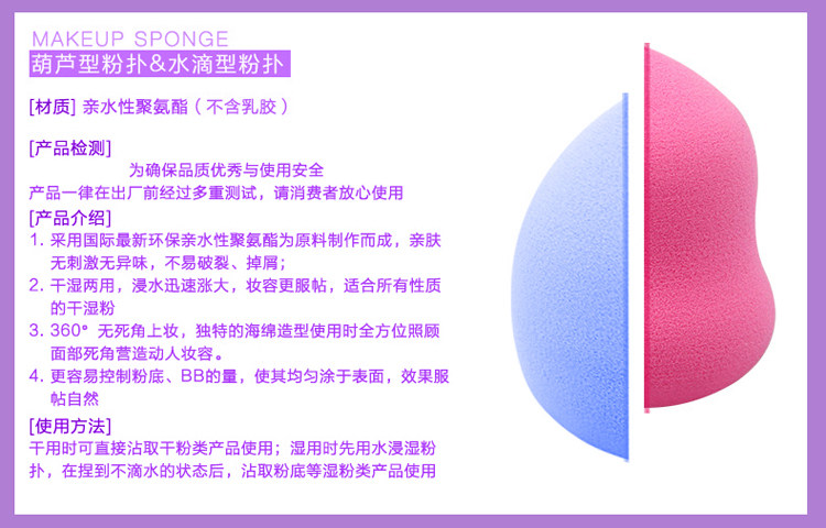 粉扑葫芦 海绵水滴化妆棉葫芦棉干湿两用套装组合2个装包邮