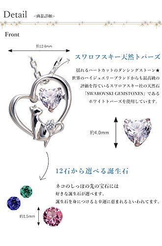 Body length × width × thickness (mm): about 14.1 × about 12.6 × about 4.9 Silver / Swarovski White Topaz (natural stone) (4 mm) / birthstone (1.5 mm) Weight (g): about 2.4g Chain: SV cut Azuki chain about 40cm your choice of birthstone to choose from, now popular for the ladies, cat motif necklace. Cute cat and cute compatibility of the heart is preeminent! Because it has become a three-dimensional structure, also make rhino standing chest when viewed from the diagonal from the front. At the top of the cat sparkling glitter every time you move, you use Swarovski natural topaz Dancing Stone of the Heart cut. Popular ladies necklace shining in dazzling light. It is a commodity that is also very pleased to present to loved ones as well as a reward to myself. The more dazzling special setting