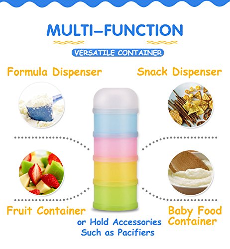 ✓VERSATILE CONTAINER - In addition to formula milk powder, generous storage space means the dispenser can also be used to hold fruits, baby snacks, solid baby food and accessories such as pacifiers, nipple shields and bottle teats.