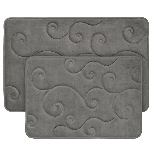 -. Title : 2 pc Memory Foam Bath Mat Set by Bedford Home - Coral Fleece Embossed Pattern - Platinum